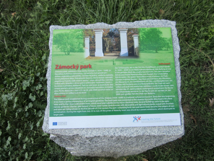 Zelená oáza s rozlohou 30 hektárov priamo v centre mesta - to je Zámocký park v Malackách. Historické pramene na konci 19. storočia uvádzajú, že kaštieľ so svojou "anglickou záhradou" patril medzi najkrajšie v kraji.