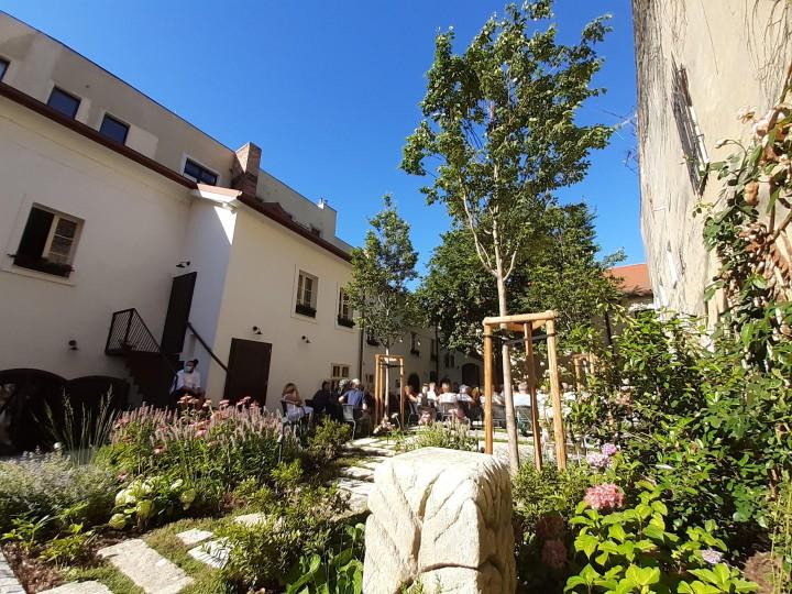 Dom Albrechtovcov je vznikajúcim kultúrnym centrom v srdci historickej Bratislavy. Záhrada bola založená v auguste 2019 ako súčasť exteriéru kultúrneho centra. Snaží sa spájať praktické a okrasné funkcie. Slúži ako auditórium pre verejné umelecké podujatia, preto je kombináciou priestorov pre sedenie publika a záhonov s okrasnými kvetmi a drevinami.